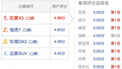 2017 年9月以来国内A级SUV市场的竞争十分激烈,在如此白热化的市场环境中,凯翼X5凭借其8万元高品质SUV的核心竞争力,销量不断攀升积攒了良好的用户口碑,赢得广大消费者高度赞誉的同时更得到了市场的认可。仅一个月的时间,在汽车之家口碑榜中便以4.88的高[详情]